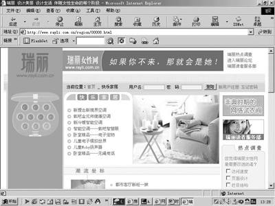 “瑞丽家居,设计美丽,设计生活”。与前两个网站不同的是,瑞丽更适合女性朋友。“潮流坐标”、“我爱我家”、“美家设计”、“主妇日记”等栏目,都从女性特有的角度出发,由点到面地引导女同胞们用自己的头脑和双手美化心爱的家园。此外,还可以进入“瑞丽论坛”和大家交流装饰的话题。