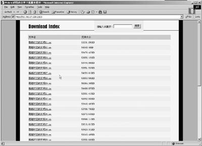 这里笔者的IP地址是61.150.17.***,那么,刚才架设的下载站就可以使用http:///61.150.17.***:2003来访问。怎么样,很容易吧,图3就是当网友访问站点时所能看到的页面。