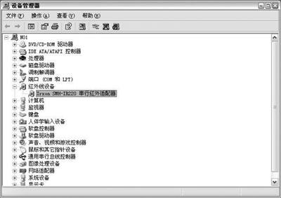 选择添加“红外线设备”,选择“从磁盘安装”,然后在弹出窗口中选择驱动路径。经过文件复制后,红外线适配器即安装完毕。在“设备管理器”中我们可以看到“红外线适配器”已经出现了(图2)。双击进入后,还可以进行详细的设置,其中包括红外线传输速率的调节,最高为115200。如果使用中发现红外线适配器有故障,可以尝试降低传输速率。在驱动正确安装完毕后,将手机的红外线打开,并且与红外线适配器“相连”。如果一切正常,系统将提示“附近有另一台计算机……”或者类似的提示。