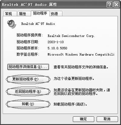 在硬件设备出现问题的时候,一般多数人都会想到重装设备驱动程序;为了提高硬件性能,我们也常常为设备安装最新的驱动程序。那么如何进行这些操作呢?我们可以通过硬件设备属性窗口的“驱动程序”标签选项卡(如图6所示)来完成。