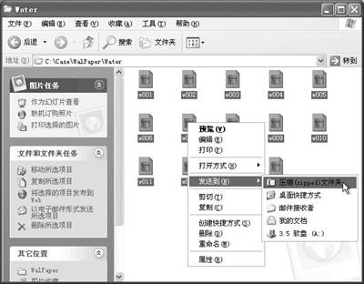 如果我想将文件或文件夹压缩,我们可以这样做:首先选择要压缩的文件或文件夹,接着通过单击鼠标右键,在弹出的快捷菜单中选择“发送到”→“压缩(zipped)文件夹”命令(如图3所示),这样将会在当前的目录下创建一个.zip格式的文件。