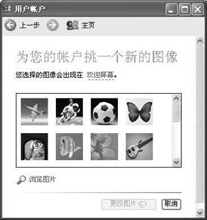 Windows XP为用户登录设计了漂亮的欢迎界面,尤其是用户名左侧的小图片更能彰显用户的个性。那你想没想过将自己的靓照放在这里,充分展示你与众不同呢?其实,实现起来非常简单:打开“控制面板”中的“用户账户”对话框,单击用户名称→打开“更改我的图片”选项 (如图)→单击“浏览图片”按钮并选择事先处理好的照片→单击“打开”按钮,则你的靓照就被放到了欢迎屏幕上了。