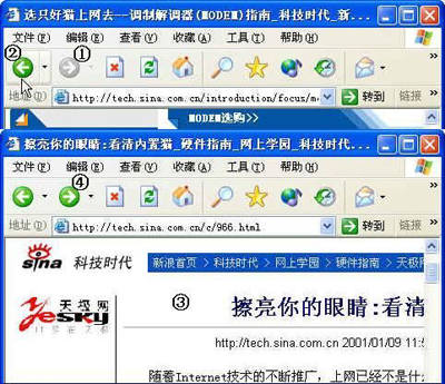 ④这时“前进”按钮变为绿色,可以用了。单击“前进”,就又回到单击“后退”按钮前的网页。