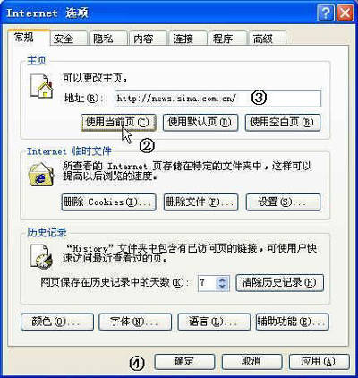 ④单击“确定”按钮。下次打开IE时首先打开的主页就是上次打开的当前页。