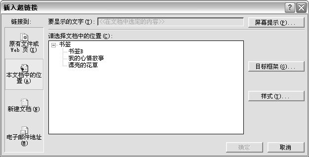 在图6中的列表中就显示了所有的书签,从中选择一个目标书签。最后单击“确定”按钮即可。