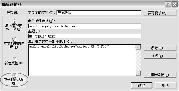 再进行一些其他的设置即可单击“确定”按钮完成电子邮件链接的工作。