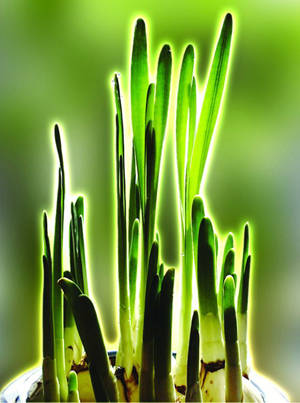 这是办公室的一盆水仙,放在窗台上,逆光拍摄。虚化的背景和叶子的光晕效果由Photoshop处理得来。