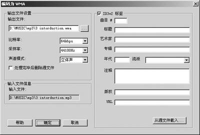 一定会有人问,为何要先把MP3文件转换为WMA文件?那是因为该软件在转换MP3文件时,只能转换为WMA或WAV文件,所以只能先把MP3转换为WMA文件。而在这个过程中,最好不要有音质下降,所以转换时的比特率一定不要低于64Kbps。