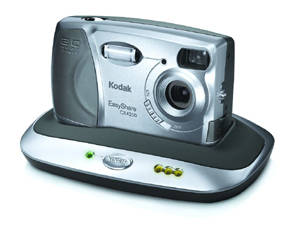 EasyShare DX6340是一款最近推出的新产品,它一改以往EasyShare系列技术指标落后的局面(图19),采用310万CCD,同时配备具有4倍光学变焦的德国舒耐德镜头。虽说310万像素在如今400万甚至500万像素流行的时代没有什么可以骄傲的,但是Kodak的人性化设计却值得称赞。如果说DX6340模式转轮设计的灵感源于Canon,那么EasyShare底座就是其专利了。通过DX6340的专用接口与EasyShare底座相连就能组成功能强大的EasyShare系统。这一先进的系统可以将数字摄影的世界置于用户的股掌之间,提供给用户一套轻松便利的服务,大大方便拍摄,分享并打印数码照片。在EasyShare软件的帮助下,即便是对此一窍不通的用户也可以轻松地做到这一步。由于EasyShare软件内置了多种常见的修改模式,因此它能很快地处理红眼、曝光过度/不足、对焦失误的数码照片,最大限度地进行补救。站在专业的角度,或许EasyShare并没有太大的吸引力,然而对于众多不熟悉电脑的普通家庭用户而言,EasyShare的魅力不言而喻。