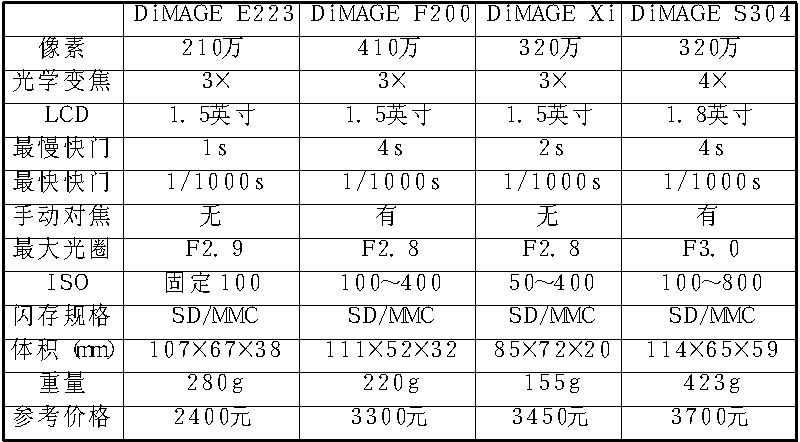 凭借高像素以及高倍光学变焦的D7系列,美能达(Minolta)在业界站稳了脚跟。然而,如果Minolta希望取得更大的市场份额的话,全面进军中端市场是必需的,而这恰恰是其以往的薄弱点。而从目前的发展势头来看,Minolta显然是有备而来,多款300万级别像素的中端产品初露端倪。
