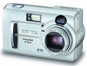 210万像素的DiMAGE E223是Minolta在低端市场的主力产品,DiMAGE E223采用3×光学变焦镜头(图15)。由6组共9个元件组成的镜头所提供的分辨率,可充分发挥210万像素CCD的潜力。DiMAGE E223比较适合不熟悉摄影技巧的用户,毕竟它非常易于操作,曝光,调焦,白平衡和闪光灯都可以全自动控制,只要用户通过取景器或者1.5英寸的LCD进行取景,按下快门便完成拍摄全过程。