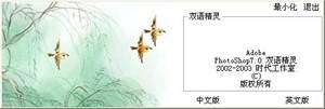 双语精灵的运行界面如图所示,点击“中文版”按钮即可使Photoshop7.0的运行界面为简体中文:点击“英文版”按钮,即可以使Photoshop7.0运行界面为英文。这一切操作只需我们单击其中的中文版或者英文版按钮,双语精灵程序就会自动为你生成并打开相应语言版本的Photoshop7.0程序,而且还会使Photoshop7.0自动记录你最后使用的语言。也就是说,下次即使不启动双语精灵,直接打开Photoshop7.0,那么Photoshop7.0会按照我们最后使用的语言界面显示,是不是够方便、快捷的?