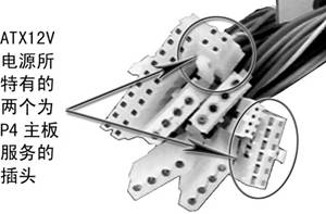 电源的搭配要注意两个问题,首先是P4主板的支持问题:目前市场上的ATX电源也分为支持P4主板的ATX12V电源及普通的ATX2.03电源。其中ATX12V电源比后者多了两个专为P4主板服务的电源插头(图5)。