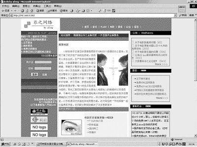 为了吸引更多的人来上网,一些网吧开始架设电影服务器。电影服务器的架设不是很简单地设置共享硬盘,然后拷些电影就OK了。为了最大化地利用网吧资源,顺便把电影服务器设为Web服务器,建议配置为 P4 1.7GHz、256MB内存、200GB以上硬盘(可以买两个酷鱼五120GB的),系统建议装Windows 2000 Server版,如果装个人版的话,IIS只支持10个人浏览,如果装高级服务器版的话,会多安装很多无用的东西,所以服务器版的默认配置是比较适合100台以上网吧的。240GB硬盘就已经可以放几百部RM和AVI格式的电影了,并且7200转的硬盘已经够很多人同时读硬盘了,并且,我还做了Web服务器,FTP服务器每天有4万多IP登录服务器,服务器也能运行得很好(图1)。有人曾建议使用SCSI磁盘但个人觉得没这个必要,那样做还要另外投资。