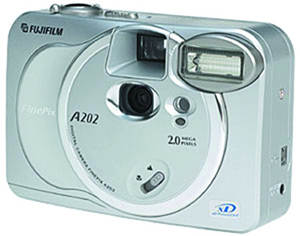 相对于热闹的中高端市场,低端市场惨烈的价格战更令人感到震惊。6月10日,富士公司对外宣布,将旗下的Finepix A202数码相机(见图)价格下调至990元,它也因此成为国内数码相机市场上将200万像素CCD数码相机最先跌破1000元大关的厂商。虽然市场上并不缺少千元以下的数码相机产品,但大多采用的是CMOS成像器件,成像素质不如CCD。相对于国际品牌来说,国内数码相机厂商大多将注意力集中在低端产品上。5月21日,联想集团推出了3款数码相机新品,分别是210万像素的V20/V20C,330万像素的V30, 这三款新品的价格在1000元~2500元之间,而最低的V20C只卖999元。与此同时,方正、紫光等国内著名数码相机厂商也推出了类似价位的普及机型。