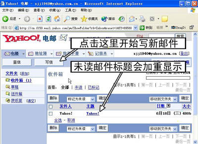 2.点击该窗口最左边的“收件箱”,打开邮箱。在这里,我们可以浏览邮箱里面所有邮件的标题(未读邮件的标题的字体会加重显示)。