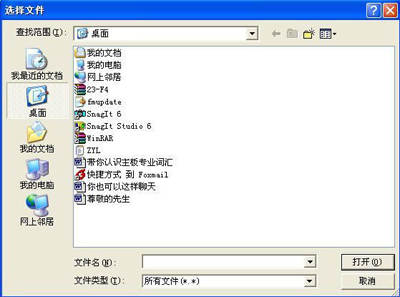 3.选择窗口中的“浏览”按钮,会出现选择对话框,选择好要发送的文件,按“打开”即可。