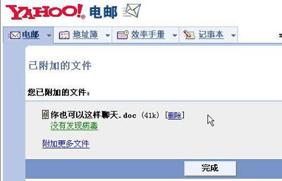 豆仔提示:附件就是指要添加到邮件中的现有的各种文件(包括图片)。有附件时,在主题旁有一回形针的小图标。