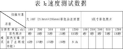 CX5100的扫描精度为1200×2400dpi,是时下主流的精度。但扫描精度并不能说明一切,同样的精度,不同扫描仪扫描出的图像质量有可能大相径庭,而且速度也会有较大差异。我们使用大16开(210mm×285mm)杂志封面、5英寸彩色照片、印刷宣传品等作为扫描对象,其中,对前两者进行了数据化的统计和分析。测试结果见表1。