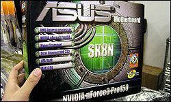 在AMD的Opteron处理器推出后,NVIDIA发布了用于Opteron处理器的芯片组nForce3 Pro。华硕最新推出的SK8N就基于nForce3 Pro芯片组,支持Socket940的Opteron处理器。即使是新品,价格也不到2000元。