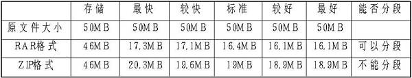 从表中可以看出,这两种模式具有压缩功能,而且RAR格式比ZIP格式压缩比高了不少。在最快与较快模式两者间比较则会发现,它们之间的压缩比区别不是很大,但在原文件较大时,例如上百MB,其区别就会明显很多。此两种模式的优势就在于:它的着重点是速度较快,适合于时间短、容量大的文件压缩,它的压缩精度虽不算最高,但压缩比也会在50%~60%左右。