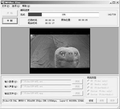 完成操作向导以后进入到主界面(图7),直接按“开始”按钮就可以开始进行MPEG的转换了。不过基于软件的MPEG压缩速度稍慢,需要有点耐心。