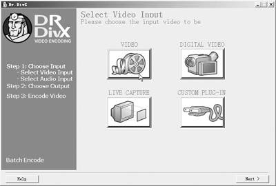 Dr.DivX内置了DivX Pro 5.0.5 Codec,除了进行视频格式的转换外还可以DivX格式直接采集数码摄像机的数字影像及实时捕捉电视等模拟影像。