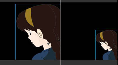 第六步:双击空白区域,回到场景,在人物图层的第130帧处和第240帧处,按F6键。在第130帧使用变形工具缩小人物比例,然后给第1帧到第240帧建立补间动画。第1帧与第130帧的人物比例,如图4所示。