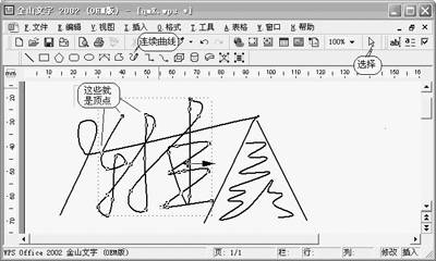 想要在文档中签名但是又没有扫描仪和手写笔等设备,该怎么办呢?其实使用《金山文字2002》图形工具中的连续曲线功能可以解决这个问题。