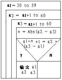 三个人的年龄大体有个范围,不过不是很确定,我们选取在30~60之间,所以可能的方案有31×31×31种,因本恩是年龄最小的,在循环中我们可以将这个特点突出出来。假设三人的年龄是a1、a2、a3,则a1的范围是30到59,而a2的范围是a1+1到60,a3也是a1+1到60。这样一来,年龄的可能方案的数量将被大大减少。