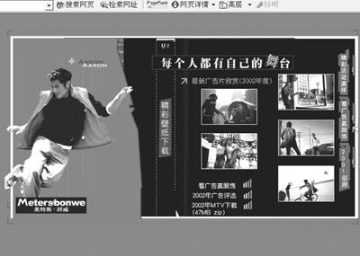 从“不走寻常路”到“每个人都有自己的舞台”,美斯特·邦威一直向我们展示着不寻常的个性。成为了许多人钟爱的休闲服饰品牌。走进网站主页, 2003夏季新款尽在其中。如果你是郭富城的铁杆Fans,不妨去参加“看广告赢服饰”活动, http://sh.sohu.com/mtsbw,奖品是郭富城亲笔签名的CD或者服饰抵用券等。