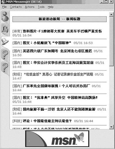以此类推,你可以不断地拓展你的MSN的栏目,在不打开浏览器的情况下查看你所关心的网站情况,从而提高你工作和学习的效率。