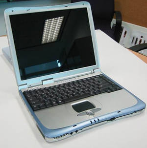 基本配置:Intel Pentium-M 2.2GHz-M,256MB PC2100 SDRAM内存,30GB硬盘,15.4英寸WSXGA+显示屏,8×DVD-ROM,64MB nVidia GeForce4 4200 Go 显卡,Sound Blaster 兼容声卡,集成10/100Mbps内置调制解调器。采用双波段集成802.11天线,可选mini-PCI卡,支持蓝牙和GPRS连接,预装Microsoft Windows XP家庭版。