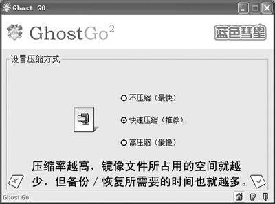 提示:Ghost也可以像那些“压缩软件”一样,在备份分区时设置压缩率,这样可以节约一定量的镜像文件存放空间。