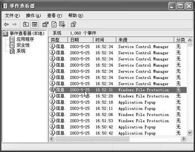 3.由于Windows 2000/XP下的“SFC”命令是完全自动执行的,因此我们无法直接知道修复了哪些系统文件。不过我们可以通过以下方法间接获得系统文件的修复情况:依次打开“控制面板→管理工具→事件查看器→系统”,根据时间提示,从列表中选定运行“SFC”时的事件,右击该事件并查看其属性即可(图3)。
