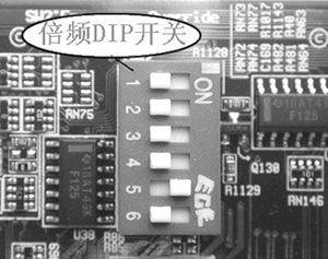 DIP开关:就是通过主板上的DIP开关来调节CPU的倍频(图2)与外频(图3),达到超频的目的。DIP开关一般分为ON与Off两种状态。