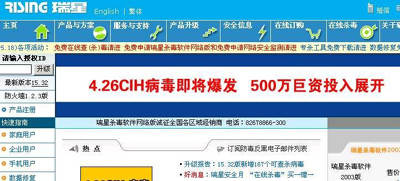 第一步:首先进入瑞星主页(http://www.rising.com.cn)后,点击“产品注册”(图1);