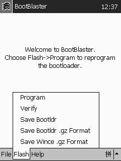 为了尽可能地使刷新过程安全,建议大家在刷新之前先将ROM资料备份到RAM中,然后复制到硬盘上。不过一般PDA并不会提供这一功能,因此需要我们借助BootBlaster软件(图2),该软件可以到ftp://ftp.handhelds.org/pub/linux/compaq/ipaq/v0.30/bootblaster_1.18.exe下载。BootBlaster的使用极为简单,进入“FLASH”菜单,选“Save Wince .gz Format”,随后它会将ROM信息保存到My Documents 目录下(图3)。事实上,备份出的.gz文件可以用Winzip解压。当我们需要恢复ROM时,只要将它改名为nk.nb0,然后执行HOST11.EXE刷新工具即可(HOST11.EXE可以在各种ROM升级包中找到)。其实,采用这种方法也可以让两台同型号的PDA复制ROM,只是大家要注意版权问题。