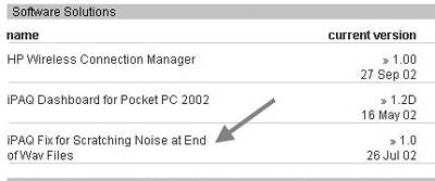 最明显的表现是,当iPAQ3630安装PPC2002之后会有爆音现象,令人难以忍受。针对这一问题,我们可以登录到Compaq的官方网站(http://h18007.www1.hp.com/support/files/handheldipaq/us/locate/71_1230.html),下载SP21742补丁即可完全解决问题(图7)。SP21742对PPC2002的默认声卡驱动进行修改,保证爆音不会出现。