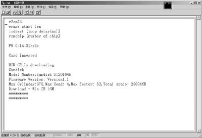 在可以正常使用的iPAQ3630上唤醒“鹦鹉”界面,此时我们就可以通过超级终端进行通讯。当我们键入“?”时,超级终端只要有反应就表示连接成功。随后键入R2C指令,此时iPAQ3630的ROM就备份到CF卡上。当出现WIN-CE is downloading时,备份步骤就已经成功了(图10)。最后我们将已经不能开机的iPAQ3630插上串口数据线、CF夹克以及CF闪存卡。用唤醒“鹦鹉”的方法,即按住POWER和ACTION键不放,同时按下软启动(Reset),随即释放Reset,此时就能看到CF Download画面,再次按下ACTION键即可开始重写ROM,而无须ROM中的Loader程序。