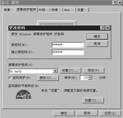 采用密码机制可以通过身份验证来阻止未经授权用户的访问,给电脑数据提供基本的安全保护。最常见的做法是在BIOS中设置开机密码,以后每次开机或进入BIOS时都会询问密码,这就避免了外人使用。但这种密码可通过将CMOS放电等方法轻易破解。更进一步的安全措施则是设置硬盘锁定密码,以三星T10为例,先进入BIOS的Security选项,然后在“HDD 0 Password →Set HDD 0 Password”项目中输入密码,保存设置并重启动后随即生效,这样每次启动时都须用密码对硬盘解密,即使外人将硬盘拆下拿到别的电脑上仍需要通过密码验证,从而确保了硬盘数据的安全。另外,还可以设置系统登录密码和屏保密码(见图1),以保护你暂时离开时将电脑锁定。