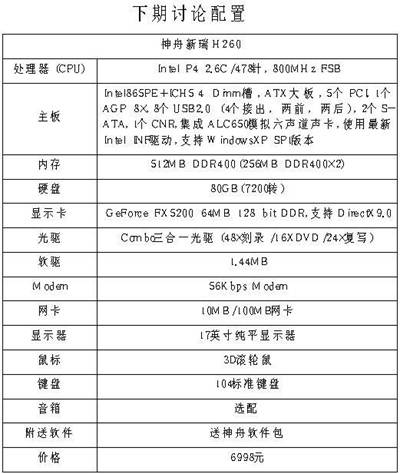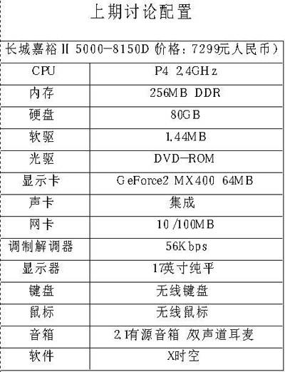 笔者认为显示器也有问题,只说了是17英寸纯平,而现在市场上的17英寸纯平CRT大都集中在1000元~2000元这个价位,不同价格的显示器在显示效果、分辨率、辐射度上都有较大差异,这一点我想大家都很清楚,再说对于这款7000多元的配置,显示器可不能配太差了。另外网卡和“猫”显得有些多余,应该根据用户的具体要求自行选择。再说明一点,如果是商用的话,鼠标和键盘就没必要那么奢侈了。