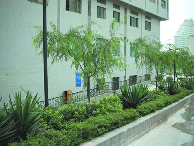 天气的状态是晴天,略有阳光普洒。图3为笔者拍摄的一花台景。季节接近夏天,图中柳树的枝叶有一丝深绿,树下一些花草也呈现出旺盛的生长力。旁边有一建筑物,上挂有一小牌,上面的字迹清晰可见。该图片我们选择的是2848×2136的分辨率,可以说图像质量非常好,画质细腻,能够真实地表现,没有任何噪点。