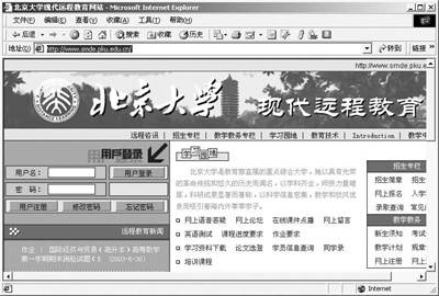 远程教育是一种新的教育形式,它可以让学习生活始终伴随着你。北京大学现代远程教育(http://www.smde.pku.edu.cn)为有志之士提供了深造的机会,在这里你可以像亲临北大一样得到名师的指导。