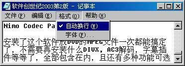 使用记事本的技巧 硬件周刊 曹理成 文本文件的运行效率高,兼容性好,因此很多软件介绍的格式都是TXT,但正常使用时一行显示的汉字很多,给阅读带来不便,从图1的滚动条可看出。 其实,我们可从“格式”菜单下选择“自动换行”,如图2所示。这样阅读的时候就不用去拖滚动条了。