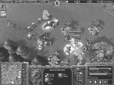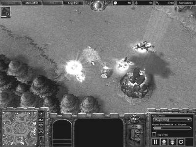 另一方面Wise_DeePCuT带领着人类联盟出生在6点方向,在用2个农民快速建造祭坛和农场之后,大法师首先抢占了自己分矿旁边的斜坡,同时让4个农民变成了民兵,准备利用水元素做肉盾清理7点的分矿。可惜的是赶往战斗地点的民兵看到了前来探路的小精灵,误把这个小精灵看成了足球。平时就一直缺乏文体娱乐活动的民兵们立刻就忘记了自己的职责,大叫着:“我要踢球啊!”冲向了小精灵。还好指挥官人类大法师及时发现,并通过严厉的批评:“球,不是这么踢DI!”使民兵们改正了错误,齐心合力将分矿的怪物消灭,并迅速地开始建造分基地。在这里Wise_DeePCuT的大法师得到了一个回城卷轴和一个+2防御的戒指。