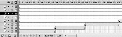 注:Flash MX提供了音乐编辑的功能,所以,我们可以在音乐效果对话框中,截取音乐的一部份,然后设置音乐的淡入淡出效果。
