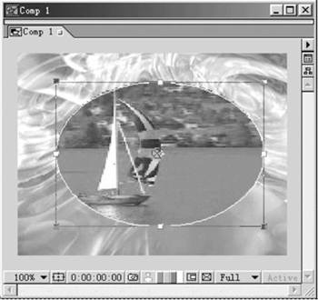 3.在Timeline或Comp1中选取上面那个视频,用“Layer→Mask→New Mask”菜单新建遮罩,再用“Layer→Mask→Mask Shape”和“Layer→Mask→Free Transform Points”菜单对遮罩的形状和大小进行修改(图3)。