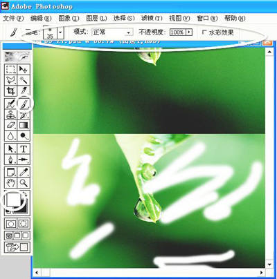 4.按住键盘上的Ctrl键,用鼠标点图层面板中的图层1,将图层1选取。设置工具箱中的前景色为白色,选取毛笔工具,设置笔头大小为35;模式设为“正常”;不透明度设为100%,然后在图层1上随意画几笔(图3)。