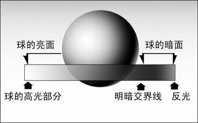 对气泡的制作有多种效果,这里限于篇幅我们给大家讲一种比较简单的制作方法。在制作之前我们先来看一幅图(图6),了解一下球体色调的基本关系,这对大家今后制作立体效果理解非常有帮助。制作像图6这样的球体,非常的简单。